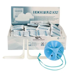Pessar Calmona + Wziernik dwułyżkowy + Osłonki do usg ECOFUNDA W zestawie: Calmona silikonowy pessar kostkowy łatwy w wyjmowaniu 4 szt. Wziernik dwułyżkowy (opak. 2 szt.) 4 opak. Osłonki do usg ECOFUNDA suche śr. 34 mm 1 opak.