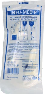 Przyrząd do przetaczania płynów infuzyjnych (INFU-MED) Przyrząd do przetaczania płynów infuzyjnych Infu-Med to produkt o wysokiej jakości, jałowy oraz szczelnie zapakowany. Produkt zapewnia pewne połączenie z pojemnikami lub workami. Produkt wykonany jest z wysokiej jakości materiałów oraz wykonany jest w taki sposób aby stanowił prosty przyrząd do przetaczania płynów infuzyjnych. Produkt nie zawiera lateksu oraz jest niepirogenny. Przyrząd posiada także odpowiednie, ostre zakończenie kanału wprowadzanego do komory kroplowej.