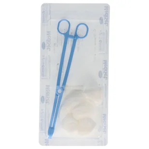 Zestaw do dezynfekcji II Mediset No 6035 Zestaw do dezynfekcji II Mediset to praktyczny zestaw złożony z plastikowych kleszczy o długości 24 cm, z pięciu tamponów z gazy bawełnianej tupfer o wielkości jajka oraz z plastikowej, transparentnej miseczki o pojemności 150 ml. Opakowanie pełni także funkcję dodatkowego pojemnika na płyny posiada wgłębienie, w których można umieścić potrzebne substancje. Po wykonanych czynnościach opakowanie służy jako pojemnik na odpadki. Zawartość zestawu: 1 sztuka kleszczy plastikowych o długości 24 cm, 5 tamponów z gazy bawełnianej (tupfer), wielkość jajka, 1 przeźroczysta plastikowa miseczka o pojemności 150 ml.