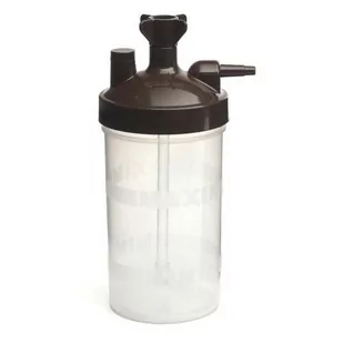 Nawilżacz do koncentratora tlenu to specjalny pojemnik na wodę instalowany przy koncentratorze w celu nawilżenia powietrza dostarczanego pacjentowi przez urządzenie. Wykonany jest z doskonałej jakości tworzywa niezawierającego gumy ani lateksu. Zapewnia optymalne nasycenie powietrza cząsteczkami wody dzięki specjalnie wyciętym w kształt prostokątów otworom, które znajdują się na końcu przewodu wlotowego nawilżacza. Zapewnia cichą i efektywną pracę. Wyposażony jest w 3 zawory bezpieczeństwa.