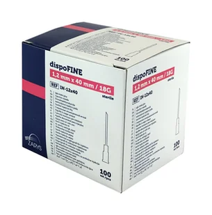 DispoFINE 18G to wysokiej jakości igła pobraniowa iniekcyjna o wymiarach 1,2 mm x 40 mm, dostępna w opakowaniu zawierającym 10 sztuk. Jest przeznaczona do precyzyjnych zabiegów medycznych, zapewniając najwyższy poziom bezpieczeństwa i komfortu użytkowania. Dzięki innowacyjnym rozwiązaniom technologicznym, igły DispoFINE charakteryzują się wyjątkową trwałością i niezawodnością.