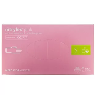 Rękawice ochronne nitrylowe bezpudrowe Nitrylex różowe 100 szt. rozmiar S - MERCATOR