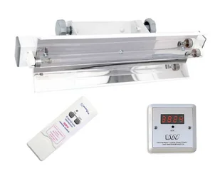 Standardowo promiennik nie jest foliowany. Za dopłatą może być zamontowany w lampie promiennik spełniający wymagania norm higienicznych systemu HACCP pokryty folią przeciwrozbryzgową (foliowany FTUV15W), która zabezpiecza przed skaleczeniami oraz rozsypaniem szkła po podłodze i na sprzętach w przypadku ewentualnego stłuczenia promiennika. Foliowanie promiennika nie wpływa na jego skuteczność i właściwości. Lampy bakteriobójcze serii NBV są urządzeniami energooszczędnymi, wyposażonymi w promienniki o długiej żywotności (8000 godzin pracy), dlatego ich stosowanie wiąże się z niskimi kosztami eksploatacji tych lamp. Charakterystyka i zalety lampy bakteriobójczej NBV-15NLW RC z pilotem zdalnego sterowania skuteczna dezynfekcja powierzchni podczas nieobecności ludzi i zwierząt w pomieszczeniu bez stosowania środków chemicznych skutecznie oczyszcza powierzchnie z bakterii, wirusów, grzybów i innych drobnoustrojów w pomieszczeniach o powierzchni do 8 m i kubaturze do 24 m 1 promiennik UV-C o mocy 15W natężenie promieniowania UV-C 0,9W/m powierzchni (z odległości 1m) regulacja kąta naświetlania w zakresie 200 poprzez nachylenie kopuły z odbłyśnikiem promiennik foliowany (opcja dodatkowa) spełnia wymagania norm higienicznych systemu HACCP oraz zabezpiecza przez rozbryzgiem szkła i skaleczeniami w przypadku stłuczenia promiennika duża żywotność promiennika 8000h - przy pracy 12h na dobę wymiana co ok.