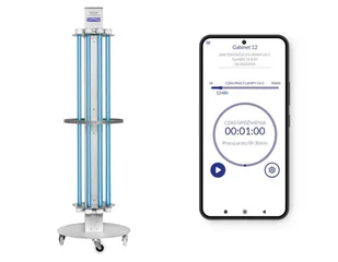 W aplikacji są również dostępne liczniki czasu pracy promienników, które odmierzają czas pracy poszczególnej lampy od momentu ostatniej wymiany promienników i sygnalizują konieczność ich ponownej wymiany. Lampą można też sterować ręcznie bez aplikacji za pomocą przycisków umieszczonych na panelu pionowym statywu lampy. Na wyposażeniu lampy znajduje się też czujnik ruchu MD wstrzymujący pracę lampy i wyłączający promieniowanie UV-C w sytuacji, gdy do pomieszczenia z załączoną lampą bezpośredniego działania wejdzie pacjent lub osoba w personelu. W placówkach ochrony zdrowia lampy bakteriobójcze bezpośredniego działania, dzięki wykorzystaniu dezynfekujących własności promieniowania UV-C, służą utrzymywaniu czystości mikrobiologicznej powierzchni znajdujących się w pomieszczeniu (ścian, sufitu, podłóg i wykładzin, blatów, mebli, sprzętu medycznego, instrumentarium, etc.) eliminując obecne na tych powierzchniach drobnoustroje, co wpływa na poprawę bezpieczeństwa mikrobiologicznego pacjentów i personelu tej placówki. Lampy wielokierunkowe bezpośredniego działania polecane są szczególnie do dużych pomieszczeń na terenie placówki, w których wykonuje się inwazyjne procedury medyczne.