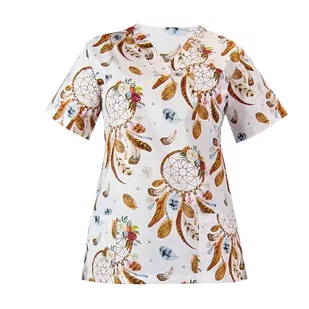 Posiada trzy praktyczne kieszenie, niezbędne podczas codziennych zajęć - jedna na piersi, dwie na wysokości bioder. Jest to model wykonany z trwałej tkaniny i ozdobiony kolorowym deseniem. Kolorowe scrubsy medyczne pozwalają pracownikom podkreślić swoją naturę oraz styl ubierania. Sprawiają, że człowiek czuje się nie tylko profesjonalnie i kompetentnie ubrany, ale także swobodnie, modnie i wyraziście. Z różnokolorowej odzieży medycznej korzysta wiele osób pracujących przede wszystkim w salonach kosmetycznych, fryzjerskich, gabinetach odnowy biologicznej czy SPA.