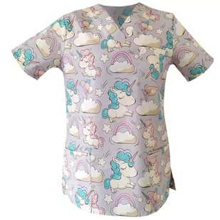 Nasze bluzy to produkt skierowany dla lekarzy, pielęgniarek, rehabilitantek, przedszkolanek a także Pań z branży beauty (spa, wellness, kliniki medycyny estetycznej) Cechy produktu: 100% bawełny, krój taliowany, dwa rozcięcia na bokach trzy kieszenie, jedna na piersi, dwie na biodrach dekolt w serek, bluza dostępna w wielu róznych wzorach dostępne rozmiary: od XXS do 4XL
