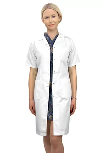 zapinany na zatrzaski krótki długi dwie kieszenie na wysokości bioder i jedna na lewej piersi długość: ok. 100 cm tkanina: 65% poliester, 35% bawełna fason lekko taliowany dla podkreślenia wcięcia dostępne rozmiary: 34, 36, 38, 40, 42, 44, 46, 48, 50, 52, 54 śnieżnobiały gramatura: 210 g/m2