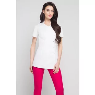 Śnieżnobiała tunika Isabel zapinana na napy cyrkonie to klasyk w kolekcji fartuszków medycznych i kosmetycznych marki Vena! Dzięki zaszewkom na plecach zyskuje wcięcie w talii, a Ty stylowo podkreśloną sylwetkę. Stójka i krótkie rękawki delikatnie opadające na ramiona dodają niewymuszonej elegancji. Dwie boczne kieszonki idealnie spełniają swoją funkcję. Ten model doskonale oddaje filozofię mody Isabel Marant: jest kluczem do tego, by być ubranym, a nie przebranym.