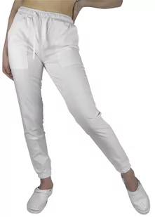 Spodnie medyczne białe elastyczne - premium Joggery medyczne damskie to spodnie must-have dla każdej kobiety, która pragnie ubierać się w zgodzie z najnowszymi trendami. Joggery damskie mogą mieć zastosowanie wielu dziedzinach zawodowych. Ich nowoczesny krój przypadnie do gustu miłośniczkom streetwearowej mody, a sportowy charakter spodoba się kobietom uprawiającym aktywny tryb życia. Jeśli cenisz sobie odzież wykonaną z wysokiej jakości materiałów, to joggery medyczne damskie dostępne w naszym sklepie są właśnie dla Ciebie! Są elastyczne dzięki temu, iż są one wyprodukowane z mieszanki bawełny, poliestru oraz elastanu, wszystkie szwy i kieszenie są wzmocnione, mocnym odpornym na rozerwanie podwójnym szwem. Nowoczesna tkanina zapewnia, że są bardzo przyjemne w dotyku, przewiewne i długo pozostają bez zagnieceń.