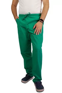 SPODNIE MEDYCZNE MĘSKIE ZIELONE 100% BAWEŁNA Męskie spodnie medyczne są bardzo praktyczne, są idealne dla pracowników szpitali, przychodni, jak i prywatnych placówek medycznych czy placówek opiekuńczych. Bardzo często wykorzystywane są na oddziałach chirurgicznych Odzież wykonana jest z mocnej i wysokiej jakości bawełny, zapewniającej trwałość i komfort noszenia, kolory naszej bawełny po wielokrotnym praniu - pozostają wciąż intensywne, a rozmiar stabilny. Tkanina nie krępuje ruchów co jest ważne przy długim dniu pracy. Opis produktu: pas cały na gumce jednolity kolor dobrany do zastosowań medycznych, po bokach dwie duże kieszenie całość wykonana z wysokiej jakości bawełny 100%, trok wiązany dla lepszego dopasowania tkanina nie kurczy się i nie odbarwia, temp.