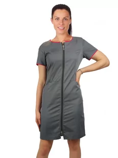 SUKIENKA MEDYCZNA KOSMETYCZNA M23 Kolor szara z lamówką w kolorze amarant Nasze sukienki to produkt skierowany do Pań pielęgniarek, położnych, aptekarek, a także Pań z branży beauty (spa, wellness, kliniki medycyny estetycznej) Sukienka wykonana jest z mocnej i wysokiej jakości tkaniny, zapewniającej trwałość i komfort noszenia, kolory naszej elanobawełny po wielokrotnym praniu - pozostają wciąż intensywne, a rozmiar stabilny. Tkanina jest elastyczna i przewiewna. Charakterystyka sukienki: sukienka taliowana zapinana na suwak z przodu rękaw krótki, dwie kieszenie na wysokości bioder zamek góra/dół długość dopasowana do rozmiaru tkanina: 35% bawełna, 65% poliester dostępna w rozmiarach od 34 do 50 sukienka dostępna w inntch wariantach kolorystycznych