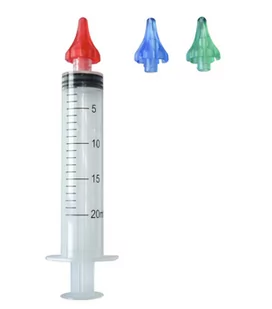 plastik 3 wymienne końcówki: czerwona, niebieska, zielona Irygator jest wyposażony w 3 wymienne końcówki, które umożliwiają korzystanie z irygatora przez różne osoby - dzięki różnym kolorom nie ma szans na pomyłkę! Dzięki temu możesz skutecznie usuwać nadmiar woskowiny czy inne zanieczyszczenia z uszu. Pojemność irygatora wynosząca 20 ml zapewnia odpowiednią ilość płynu do dokładnego przepłukania uszu. Możesz łatwo napełnić irygator wodą lub specjalnym roztworem do czyszczenia uszu. Dbanie o higienę uszu jest ważne dla utrzymania zdrowia i komfortu.
