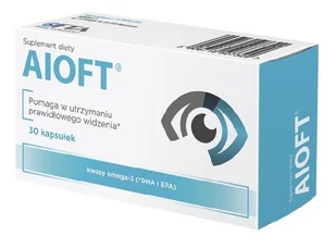 Waciwoci: Kwasy omega-3, gwnie DHA, stanowi skadnik fosfolipidw bon komrkowych. DHA dziaa wspomagajco na utrzymanie prawidowego widzenia. Korzystne dziaanie wystpuje w przypadku spoywania 250 mg DHA dziennie. DHA i EPA zawarte w preparacie Aioft pochodz z wysokiej jakoci oleju rybiego PureMax, ktry jest maksymalnie oczyszczonym i skoncentrowanym rdem tych skadnikw. Skad preparatu zosta opracowany na podstawie dowodw naukowych - Evidence Based Medicine.
