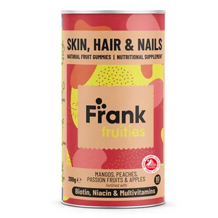 Zadbaj o włosy i skórę od środka z Frank Fruities Skin Hair NailsFrank Fruities Skin Hair Nails to suplement diety w żelkach, który został stworzony w trosce tych, którzy pragną zadbać o kondycję swojej skóry, zdrowie paznokci oraz piękno swoich włosów. Produkt jest jednym z najbardziej kompletnych holistycznych suplementów stworzony dla kobiet z kompleksem 13 witamin i minerałów. Pielęgnuję skórę i chroni włosy. Wzmacnia paznokcie na poziomie komórkowym. Wspiera kobiece cykle, zapewniając dobr