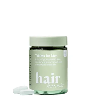 Łatwe do połknięia tabletki na włosy w dla mężczyzn z 20 witaminami, minerałami oraz aminokwasami. Przeciwdziałaj wypadaniu włosów z tabletkami na włosy dla mężczyzn Hair Formula Tablets for Men. Tabletki na wypadanie włosów dla mężczyzn to nasze najsilniejsze suplementy, z klinicznie sprawdzonymi składnikami, które przyczyniają się do utrzymania zdrowych włosów. Wysoki poziom minerałów i witamin, w tym biotyny, selenu i cynku zapewnia wzrost zdrowych włosów i zapobiega wypadaniu. Tabletki są wyprodukuowane z naturalnych i wegańskich składników.