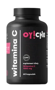OY!CHE Witamina C 1000 mg, kapsułkiSuplement diety zawierający 1000 mg czystej witaminy C w jednej kapsułce (1250% RWS). Wspiera odporność, pomaga zmniejszyć uczucie zmęczenia i wykazuje silne działanie antyoksydacyjne. Idealny dla osób aktywnych, zestresowanych i w okresach obniżonej odporności. Dlaczego warto: 1000 mg witaminy C w 1 kapsułce (1250% RWS)Czysta forma L-askorbinianu – wysoka przyswajalnośćProsty skład: