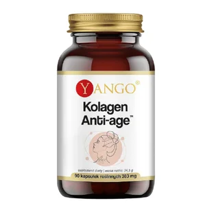 Yango Kolagen Anti-age, kapsułki 90 szt. Suplement dietyYango Kolagen Anti-ageto połączeniekolagenu I i III z witaminą C, biotyną i kwasem hialuronowym. Dla kogo?Dla osób chcących wesprzeć sprężystości i jędrności skóry. dla osób chcących zachować dobre nawilżanie tkanek. Składniki4 kapsułki%RWS*Kolagen typu I i III1000 mg-Witamina C (kwas L-askorbinowy)80 mg100%Witamina B7 (D-biotyna)2500µg5000%Kwas hialuronowy (hialuronian sodu)80 mg-*Referencyjna Wartość Spożycia.