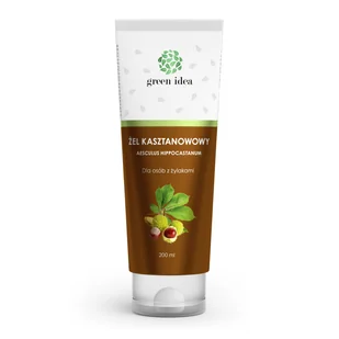 Produkt Green Idea, kasztanowy żel, 200 ml do kupienia w Gemini. Żel kasztanowy Green Idea to naturalna pomoc dla osób cierpiących na żylaki oraz obrzęki prowadzące do uczucia tzw. ciężkich nóg. Zawarte w ekstrakcie z kasztano ...