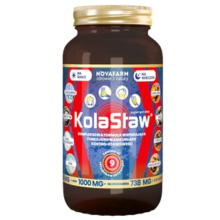 Produkt KolaStaw, 100 kapsułek do kupienia w Gemini. KolaStaw to suplement diety zawierający kompozycję 9 składników aktywnych, w tym glukozaminę, chondroitynę, MSM, ekstrakty roślinne oraz witaminę C. Formuła została ...