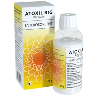 Produkt Atoxil Big, proszek, 10 g do kupienia w Gemini. Atoxil big entersorbent to jednoskładnikowy suplement diety zawierający krzem, który przyjmuje się w postaci zawiesiny przygotowanej z proszku.
