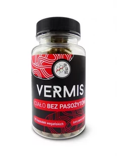 WYRÓŻNIAJĄCE SIĘ cechy suplementu diety Vermis, Organis, 90 kapsułek wege : Vermis to połączenie aż 11 ziół stwarzających niekorzystne warunki dla pasożytów: tymianek, mięta pieprzowa, oregano, orzech włoski, koper włoski, oman, tatarak, imbir, piołun, wrotycz, goździkowiec. Substancje czynne występujące w ziołach to: seskwiterpeny, gorzkie glikocydy, terpenoidy, garbnik, tujon, flawonoidy, gorycze, seskwiterpeny, heleniny, saponiny, poliacetyleny nie zawiera zbędnych dodatków: