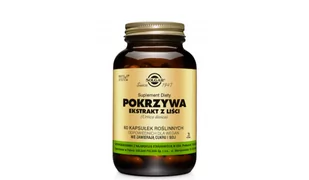 Ekstrakt z liści pokrzywy jest polecany osobom szczególnie narażonym na stres, ponieważ pomaga poprawić samopoczucie, a także zmniejsza zmęczenie. Poza tym wspiera naturalną odporność organizmu. Suplement z ekstraktem z liści pokrzywy warto przyjmować, jeśli zauważymy nadmierną utratę włosów. Poza tym można po niego sięgać przy łupieżu oraz grzybicy skóry głowy. Suplement diety Solgar z ekstraktem z liści pokrzywy znajduje się w opakowaniu zawierającym 60 kapsułek roślinnych.