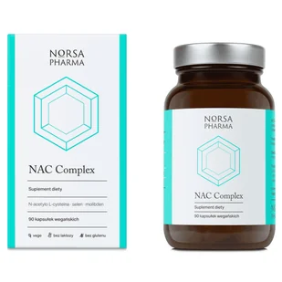Produkt NAC Complex, 90 kapsułek do kupienia w Gemini. NAC Complex od Norsa Pharma to suplement diety w kapsułkach zawierający acetylowaną formę aminokwasu cysteiny w postaci N-acetylo L-cysteiny oraz selen i molibden. ...