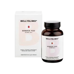 Bellyslimo Berberin P550, kapsułki 60 szt. Berberin P550 to suplement diety, który zawiera standaryzowany ekstrakt z berberysu indyjskiego (Berberis aristata DC), który wspomaga utrzymanie prawidłowego poziomu glukozy we krwi oraz korzystnie wpływa na metabolizm trójglicerydów w osoczu. Dodatkowo wspiera prawidłowe funkcjonowanie wątroby i układu sercowo-naczyniowego. Składniki aktywnew 1 kapsułcew 2 kapsułkachEkstrakt z korzenia berberysu indyjskiego (Berberis aristata DC) – BERBEVIS®550 mg1100