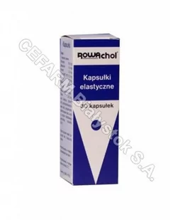 Dlaczego warto stosować Rowachol$147o Ułatwia rozpad i eliminację kamieni, zmniejsza endogenną produkcję cholesterolu, obniżając jego stężenie w żółci i wspomagając rozpuszczanie kamieni cholesterolowycho Chroni przed ponownym powstawaniem kamieni, poprawia metabolizm wątrobowy oraz korzystnie wpływa na skład i wydzielanie żółcio Działa żółciotwórczo i żółciopędnieo Działa przeciwzapalnie i spazmolitycznie, rozluźnia mięśnie gładkie dróg żółciowych, zmniejszając dolegliwości bóloweo Działa przeciwbakteryjnieo Łagodzi objawy niestrawnościKiedy zalecane jest stosowanie Rowacholu$148oLeczenie łagodnych dolegliwości spowodowanych kamicą żółciową, profilaktyka kamicy dróg żółciowych, stany skurczowe dróg żółciowych, dyskineza dróg żółciowychoPrzed i po zabiegach w obrębie dróg żółciowych (w zespole po cholecystektomii)SkładKapsułki miękkie - skład: Jedna kapsułka zawiera: $149-pinen 13,6 mg, $150-pinen 3,4 mg, Camphen 5,0 mg, Cineol 2,0 mg, Menthon 6,0 mg, Menthol 32,0 mg, Borneol 5,0 mg, substancje pomocnicze: Oliwa z oliwek 33,0 mg. Powłoczka kapsułki: żelatyna, glicerol 85%, hydroksybenzoesan etylu (sól sodowa), hydroksybenzoesan propylu (sól sodowa), wodny roztwór miedziowego kompleksu chlorofilu (E141).Środki ostrożnościZachowawcze leczenie kamicy w przewodzie żółciowym wspólnym powinno się rozpocząć ze świadomością, że może prowadzić do komplikacji klinicznych takich jak: żółtaczka zaporowa, wstępujące zapalenie dróg żółciowych, zapalenie trzustki i innych. Lekarz powinien mieć świadomość konieczności poinformowania pacjenta (szczególnie pacjentów w starszym wieku) o niezbędności podjęcia wymaganych środków.Lek należy przechowywać w miejscu niedostępnym i niewidocznym dla dzieci.Przechowywać w temperaturze poniżej 25°C