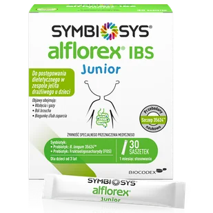 Produkt Symbiosys Alflorex IBS Junior, od 3 lat, 30 saszetek do kupienia w Gemini. Symbiosys® Alflorex IBS Junior to żywność specjalnego przeznaczenia medycznego w formie proszku w saszetkach, opracowana w celu wspierania post ...
