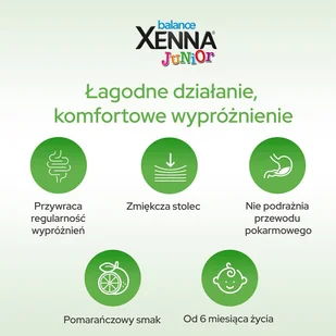 Xenna Balance Junior wyrób medyczny zawiera makrogol 3350, o osmotycznym działaniu przeczyszczającym, który w naturalny sposób reguluje pracę jelit, nie powodując bóli brzucha ani nagłego parcia. Polecany w celu leczenia przewlekłych zaparć u dzieci powyżej 6. miesiąca życia.