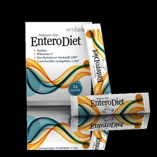 EnteroDiet - suplement diety zawierający 1,5 g inuliny (naturalny prebiotyk), bakterie i drożdże probiotyczne oraz witaminę C.