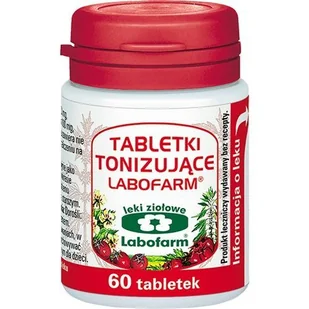 LABOFARM TABLETKI TONIZUJCEWskazania: Tabletki tonizujce Labofarm tradycyjnie stosuje si jako lek wspomagajcy prac serca i ukadu krenia (przy braku obrzkw, zwaszcza w okolicy koczyn dolnych, oraz wtedy gdy stosowanie innych lekw nie jest konieczne). Lek adresowany jest do osb dorosych. Waciwoci: Labofarm Tabletki tonizujce to tradycyjny produkt leczniczy, rolinny do stosowania w wymienionych powyej wskazaniach, wynikajcych wycznie z jego dugotrwaego stosowania. Gg jest rdem m.