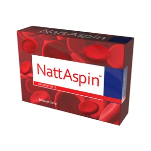 NattAspin to suplement diety zawierający 100 mg NATTOKINAZY (2000 FU, jednostek degradacji fibryny), enzymu, który powstaje w wyniku fermentacji nasion soi z użyciem szczepu Bacillus subtilis. NattAspin został dodatkowo wzbogacony ekstraktem z owoców oliwki europejskiej, bogatym w HYDROKSYTYROZOL. Hydroksytyrozol jest jednym z najsilniejszych przeciwutleniaczy. Suplement diety NattAspin: jest odpowiedni dla osób chorych na cukrzycę jest odpowiedni dla wegetarian nie zawiera laktozy nie zawiera glutenu nie zawiera GMO Skład (1 kapsułka):