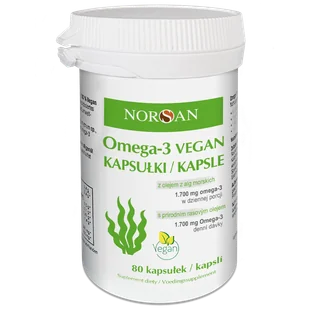 Produkt Norsan Omega-3 Vegan, 80 kapsułek do kupienia w Gemini. Norsan Omega-3 Vegan to suplement diety w postaci kapsułek z olejem z alg. Olej z alg Norsan jest produkowany z alg Schizochytrium sp. – to mikroalga, ...