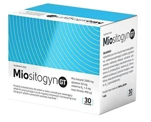 Mositogyn GT - 30 saszetek smak pomarańczowy. Produkt przeznaczony dla kobiet w wieku rozrodczym zawierający składniki przyczyniające się do regulacji aktywności hormonalnej oraz biorących udział w procesach podziału komórek**Witamina B6 przyczynia się do regulacji aktywności hormonalnej. Kwas foliowy bierze udział w procesie podziału komórek. Zrównoważona dieta i zdrowy tryb życia są istotne dla zachowania zdrowia.