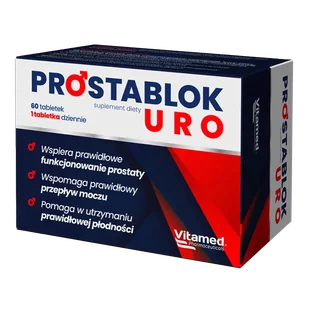 Produkt ProstaBlok Uro, 60 tabletek do kupienia w Gemini. ProstaBlok Uro to suplement diety w tabletkach przeznaczony dla mężczyzn. Starannie opracowana formuła zawiera ekstrakty roślinne, likopen, cynk i selen.