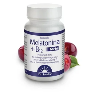Skraca czas zasypiania oraz jet lag''u 3 mg melatoniny w tabletce Witamina B12 dla funkcji psychologicznych i pracy nerwów Smak wiśniowy, produkt wegański Melatonina + B12 forte to produkt stworzony dla osób, które mają problemy z zasypianiem oraz słabą jakością snu sen płytki, z dużą ilością snów, z wybudzeniami, nie przynoszący odpoczynku (poranne zmęczenie). Dolegliwość taka może być okresowa (z powodu stresującej sytuacji życiowej, pełni księżyca, zaburzenia rytmu dobowego, itp.) lub chroniczna. W takich przypadkach wystarczy jedna tabletka dziennie na 1-2 godziny przed planowanym snem. Tabletki Melatonina + B12 forte polecane są także osobom podróżującym, w szczególności zmieniającym podczas podróży strefę czasową. Dotyczy to szczególnie podróży do dalekich krajów, gdzie przestawienie się na miejscowy czas zajmuje niekiedy nawet tydzień.