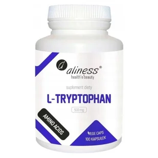 L-Tryptophan Aliness to suplement diety wspierający pamięć i koncentrację, pomagający w regulacji snu i zwalczaniu bezsenności. Dodatkowo preparat wspiera leczenie zespołu jelita drażliwego, reguluje apetyt, pomaga kontrolować masę ciała i wspiera odporność. L-tryptofan to aminokwas egzogenny, jest składnikiem budulcowym białek, ponadto bierze udział w procesie powstawania serotoniny, melatoniny i niacyny (wit. PP). .