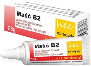 MA B2 HEC NA ZAJADYWskazania: Ma B2 hec na zajady wskazana jest do stosowania w przypadku zmian skrnych w postaci zajadw i bolesnych pkni skry w obrbie ust. W skuteczny sposb przypiesza gojenie si bolesnych pkni skry w kcikach ust, agodzi podranienia i stany zapalne oraz wykazuje dziaanie nawilajce i intensywnie pielgnujce. Waciwoci: Ma B2 hec na zajady to produkt cechujcy si unikalnym skadem, ktry niezwykle korzystnie oddziauje na stan skry. W zauwaalny sposb sprzyja redukcji problemw i podranie w obrbie jamy ustnej.