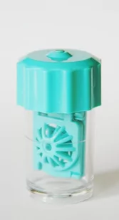 Pojemniczek do bezpiecznego przechowywania twardych soczewek kontaktowych, wyposażony w koszyczek.