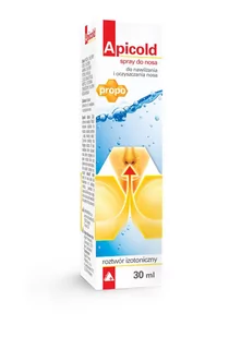 APICOLD PROPO SPRAY DO NOSAWskazania: Spray do nosa Apicold propo jest roztworem izotonicznym przeznaczonym do stosowania celem nawilania i oczyszczania nosa. Adresowany do osb dorosych i dzieci powyej 4. roku ycia. Doskonale sprawdza si w przypadku osb przebywajcych w klimatyzowanych pomieszczeniach, naraonych na dziaanie kurzu i szkodliwych oddziaywa atmosferycznych czy przebywajcych w suchych i ciepych pomieszczeniach (centralne ogrzewanie). Polecany rwnie w przypadku objaww alergicznehgo zapalenia bony luzowej nosa oraz przezibienia.