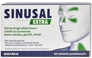 Suplement diety Sinusal Extra tabletki zawiera m.in. ekstrakt z kwiatu czarnego bzu, ekstrakt z ziela werbeny, ekstrakt z korzenia pierwiosnka lekarskiego, ekstrakt z ziela szczawiu, ekstrakt z korzenia goryczki, ekstrakt z kwiatu dziewanny wielkokwiatowej. Opakowanie zawiera 60 tabletek.