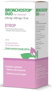 BRONCHOSTOP Duo na kaszel, to syrop w dawce (120 mg + 830 mg)/15 ml.