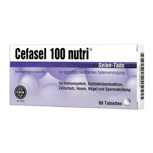Co to jest Cefasel 100 nutri?Cefasel 100 nutri to wyjątkowy suplement diety stworzony dla osób, które pragną uzupełnić swoją codzienną dietę o cenny składnik - selen. Produkt jest opracowany z myślą o wsparciu zdrowego trybu życia, zapewniając organizmowi niezbędną dawkę tego ważnego mikroelementu. Cefasel 100 nutri wyróżnia się nie tylko swoim składem, ale również wysoką jakością i skutecznością. Zawiera dokładnie dostosowaną dawkę selenu, która została starannie wyselekcjonowana, aby zapewnić o