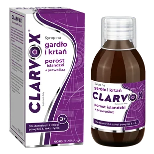 Produkt Clarvox Syrop na gardło i krtań dla dorosłych i dzieci od 3 lat, porost islandzki + prawoślaz, 200 ml do kupienia w Gemini. Clarvox Syrop na gardło i krtań to suplement diety w płynnej postaci, przeznaczony dla dorosły ...