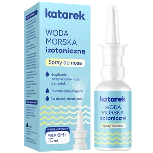 Produkt Katarek, woda morska izotoniczna, spray do nosa, 30 ml do kupienia w Gemini. Katarek woda morska izotoniczna to izotoniczny preparat w formie sprayu do nosa. Wyrób medyczny Katarek jest oparty na wodzie morskiej p ...