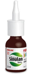 Sinulan Express Forte Junior to aerozol do nosa zawierający CAPTOMUCIL(R) w postaci roztworu izotonicznego, stosowany jest wspomagająco w stanach zapalnych, takich jak zapalenie błony śluzowej nosa, zapalenie zatok oraz w przypadku kataru lub suchości nosa. Wspomaga szybkie i skuteczne usuwanie wydzieliny dzięki Captomucil (R), który zmniejsza lepkość śluzu i umożliwia szybkie i skuteczne usunięcie wydzieliny. Skład: Captomucil, woda, kwas chlorowodorowy, sacharynian sodu, chlorek sodu, aromat mietowy, dekspantenol, sól sodowa metyloparabenu (nipagina).