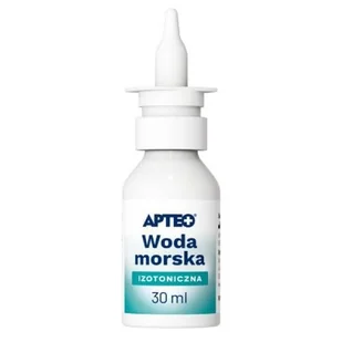 Wyrób medyczny, APTEO Woda morska izotoniczna, 30ml Izotonicznym roztworem wody morskiej, nawilża suchą śluzówkę nosa, stosuje się ją pomocniczo w czasie nie...
