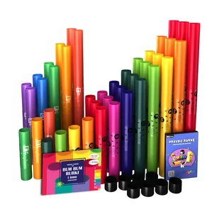 Zestaw klasowy jest złożony z 3 zestawów Diatonicznych, 2 zestawów Chromatycznych i 1 zestawu Sopranowego. Zastosowanie oktawatorów na wybrane dźwięki umożliwi rozszerzenie skali grania do 2,5 oktawy. Ponieważ rzadko kiedy będą do gry wykorzystywane wszystkie dźwięki, na tym zestawie może aktywnie muzykować ok. 30 osób. Odpowiednio zdublowane dźwięki pomogą w tworzeniu grup grających tymi samymi rurkami, co jest ważnym elementem budującym współpracę w grupie. NOWOŚĆ 2017! W zestawie komputerowy dyrygent ,,Przybij Rurkę"Czerwony worek, w którym mieści się cały zestaw z akcesoriami, pozwoli utrzymywać porządek i szybkie przemieszczanie się pomiędzy zajęciami.